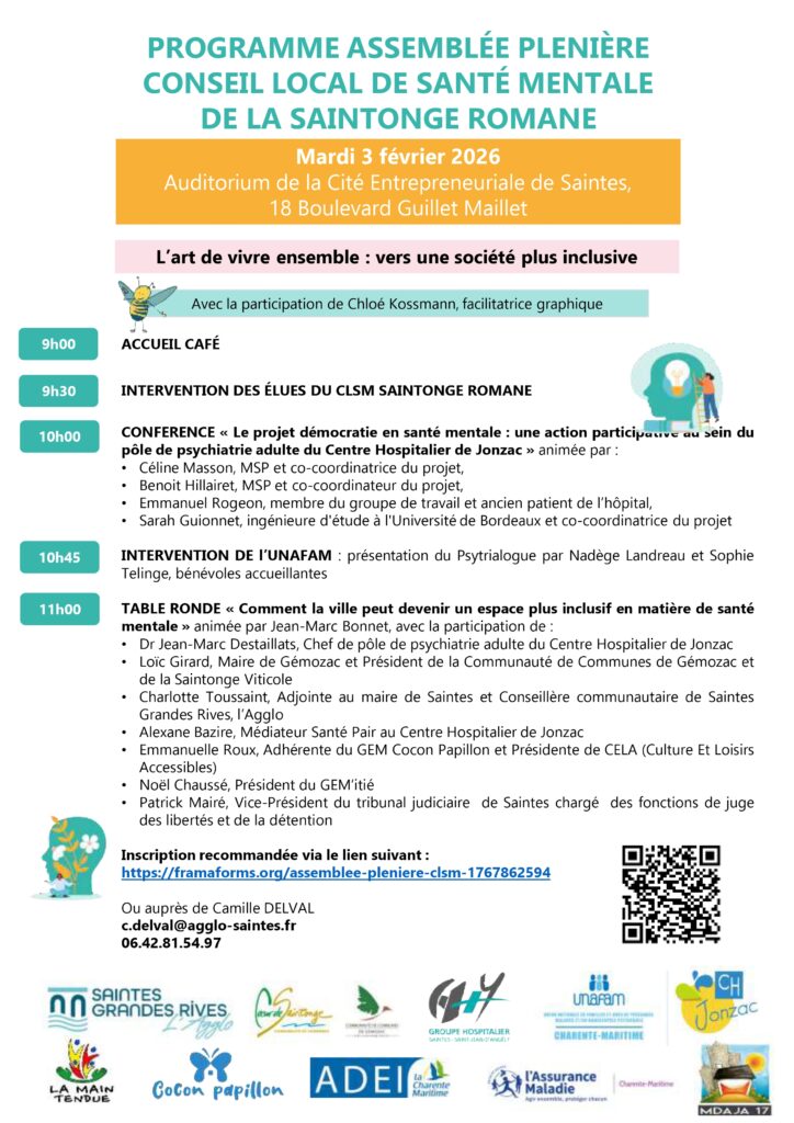 CLSM Grand public le 03/02/2026 à partir de 9h à l’auditorium Cité entrepreneuriale Saintes.